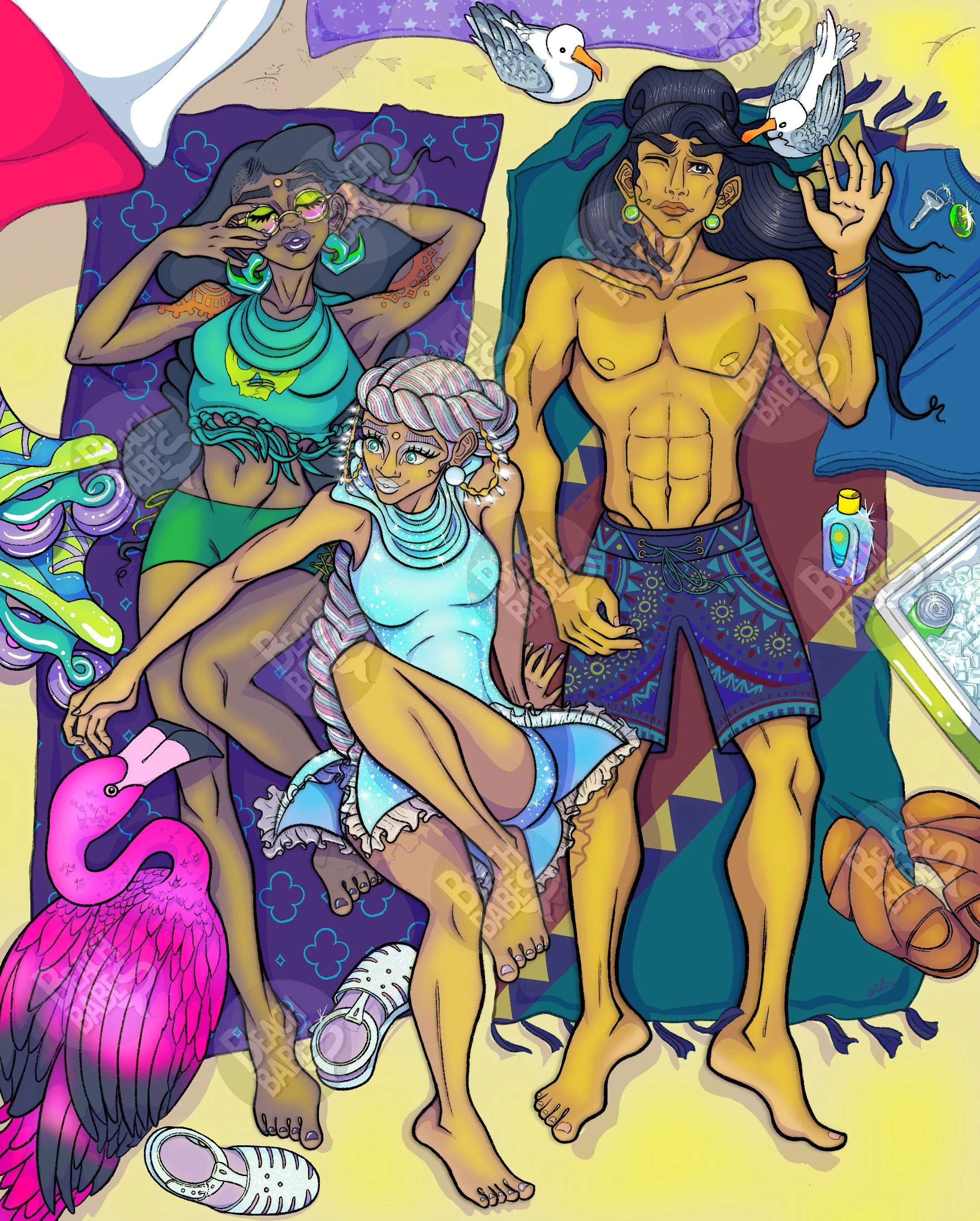 If you haven’t seen already the first four episodes of ‘Beach Babes’ are available to read on the Webtoon App or Webtoon.com. Please go check them out if you have yet to already. Episodes are updated on random Mondays. Though I must apologize for the delay on Episode 5, having been advertised as updating Monday June 26th. Clearly that is not the case. As mentioned on the webtoon update I am all hands on deck, solely. I do not have a team of people working on this comic as it is a passion project and does not pay my bills. I hope that you can forgive the delay as I get personal family matters squared away. I will no longer preemptively advertise episodes with a certain upload date unless it is for a holiday specific episode. That being said I hope you had a wonderful Juneteenth and a peaceful 4th of July. Thank you for reading and your patience. In the meantime please enjoy this preview of a panel from episode 5.